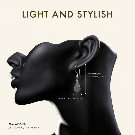 MESOP Teardrop Womens Silver Earrings, 925 Sterling Silver Drop Earrings, Timeless Mesopotamia History Inspired, Fluted Filigree Dangle Earrings and Valentines Day Gift
